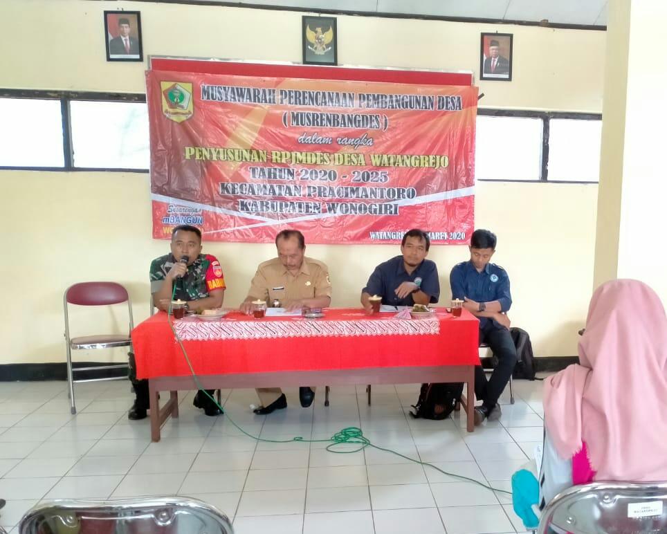 Wonogiri – Bertempat di Pendopo Balai Desa Watangrejo, Kecamatan Pracimantoro telah dilaksanakan kegiatan Musrenbangdes dalam rangka penyususnan RPJMDES Desa Watangrejo untuk Tahun 2020 – 2025, Senin(16/3).