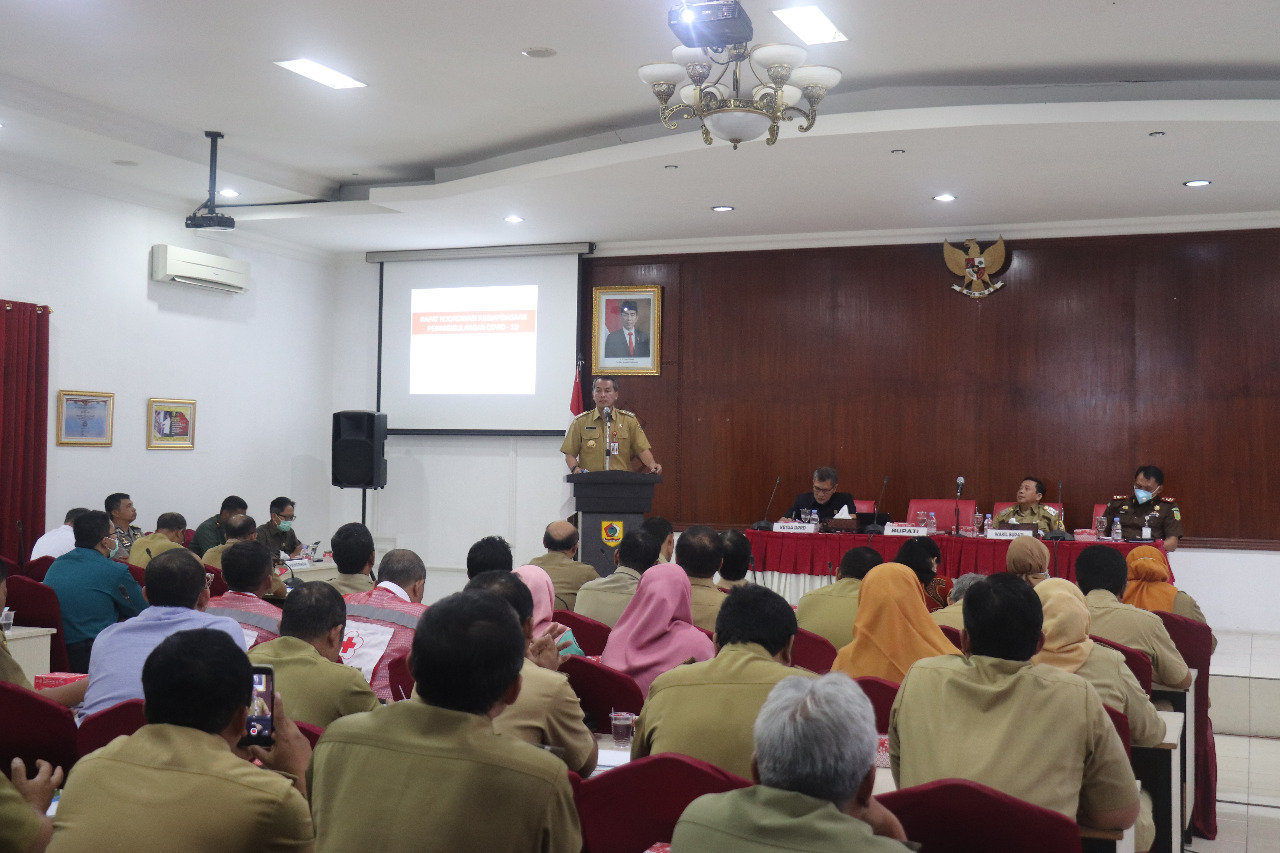 Wonogiri – bertempat di Ruang Girimanik Setda Wonogiri telah dilaksanakan rapat koordinasi kesiapsiagaan kewaspadaan dan pencegahan terhadap resiko penularan infeksi Corona Virus Disease (Covid 19) Kabupaten Wonogiri, sebagai penanggungjawab Pj. Sekda Wonogiri Drs. Teguh Setyono, M.M,. Senin (16/3).