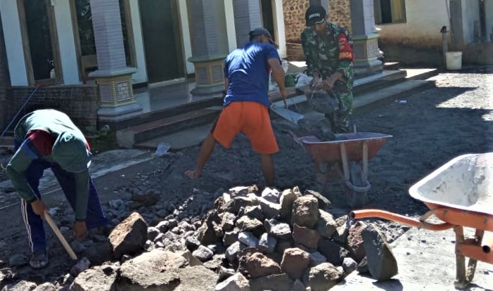 Wujud Kemanunggalan TNI-Rakyat, Babinsa Nguneng Bersama Masyarakat Kerja Bakti Cor Jalan