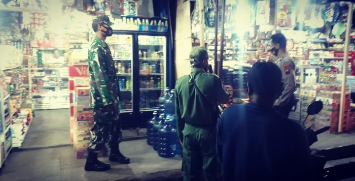Wonogiri – Upaya pendisiplinan protokol kesehatan ditengah pandemi Covid-19 terus dilakukan. Terkait dengan itu, anggota Koramil 14/Jatisrono bersinergi dengan anggota Polsek Jatisrono, secara terus-menerus melaksanakan operasi penegakan disiplin protokol kesehatan, baik siang maupun malam hari.