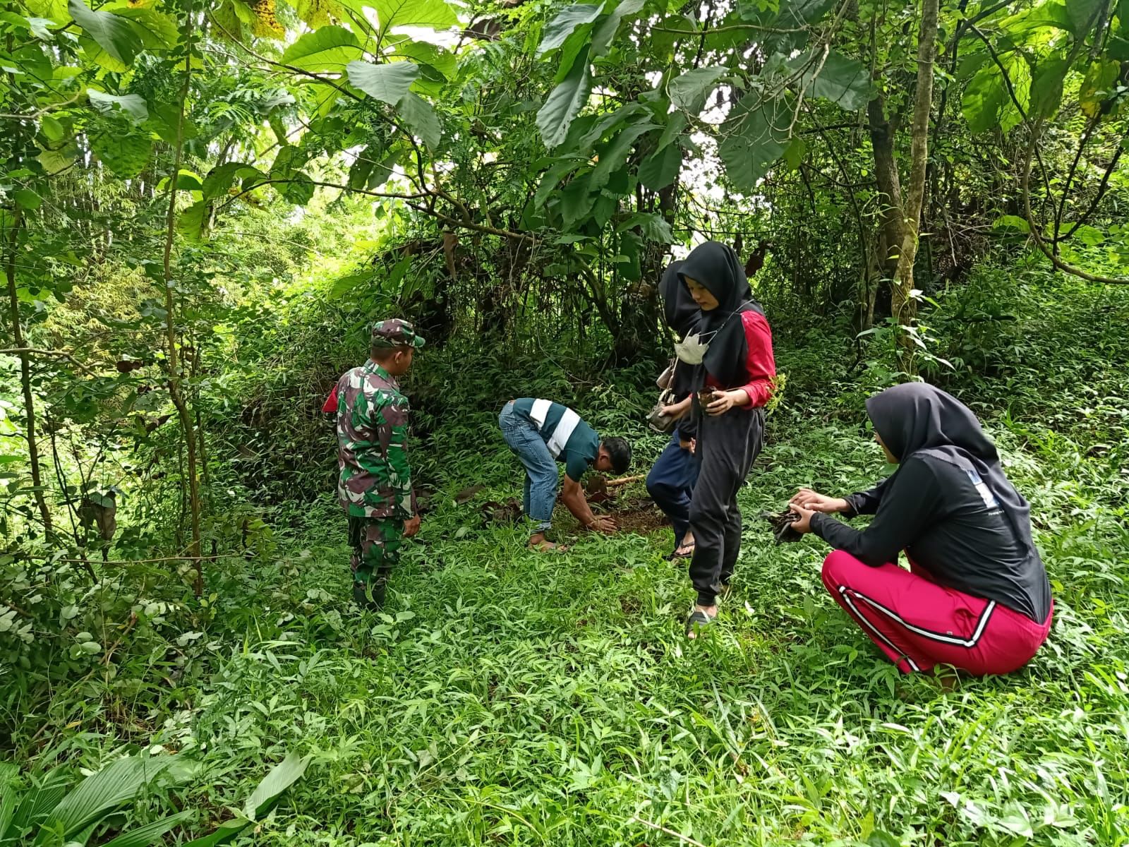 Cegah Terjadinya Longsor, Babinsa Bersama Mahasiswa Berprestasi Tanam Ratusan Pohon Dilereng Gunung