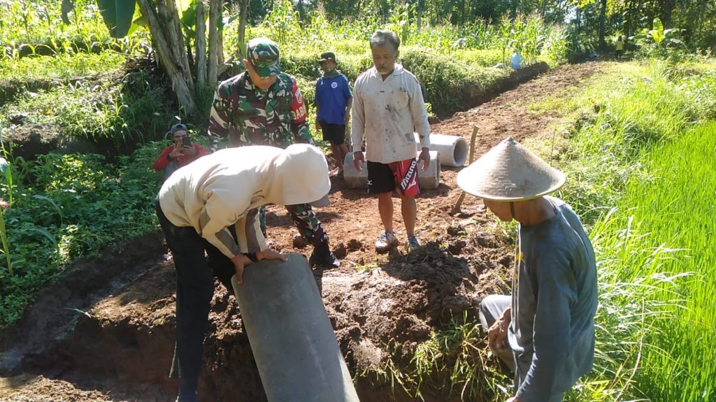 Wonogiri – Membantu warga di Desa yang menjadi tanggung jawabnya sudah merupakan kewajiban dan tanggung jawab sebagai seorang Babinsa, Serka Agung yang merupakan Babinsa Desa Bulurejo Koramil 04/Nguntoronadi Kodim 0728/Wonogiri, berbaur bersama warga bangun Gorong-gorong guna mengairi persawahan di Dsn Bolo Rt. 03/Rw.03 Ds. Bulurejo kec. Nguntoronadi, Kamis (6/04/2023).