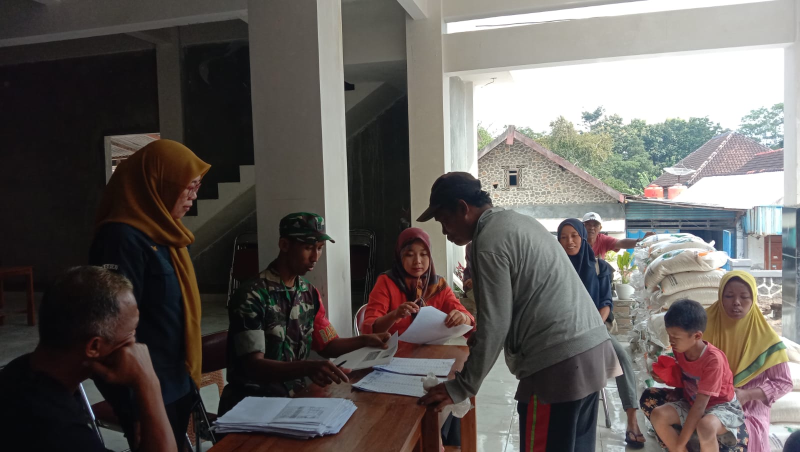 Wonogiri – Babinsa Desa Nguneng, Koramil 24/Puhpelem Serma Dadang, melaksanakan kegiatan pendampingan penyaluran bantuan pangan Cadangan Pangan Pemerintah (CPP), yang bertempat di Kantor Balai Desa Nguneng, Kamis(20/4/24).