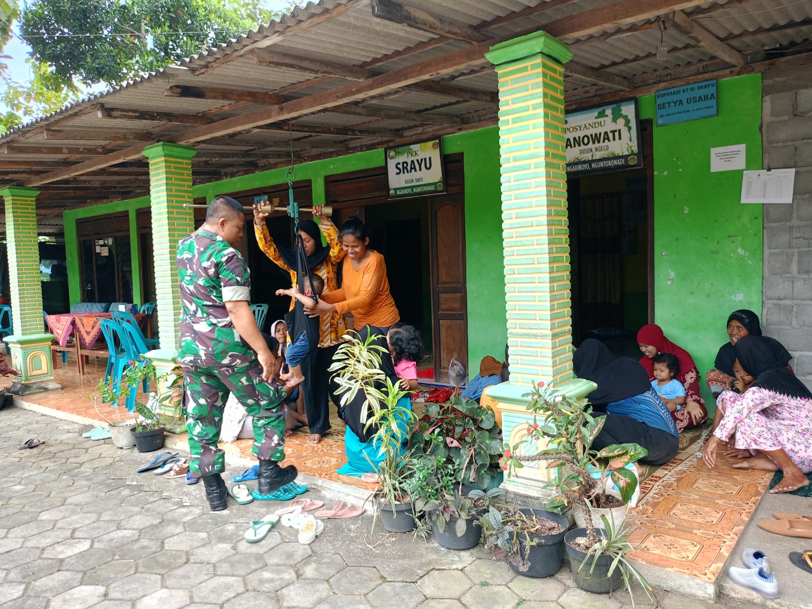 Wonogiri – Babinsa Desa Ngadiroyo, Koramil 04/Nguntoronadi, Sertu Sarto memberikan pendampingan Posyandu di Dusun Srayu, Desa Ngadiroyo, Kecamatan Nguntoronadi.